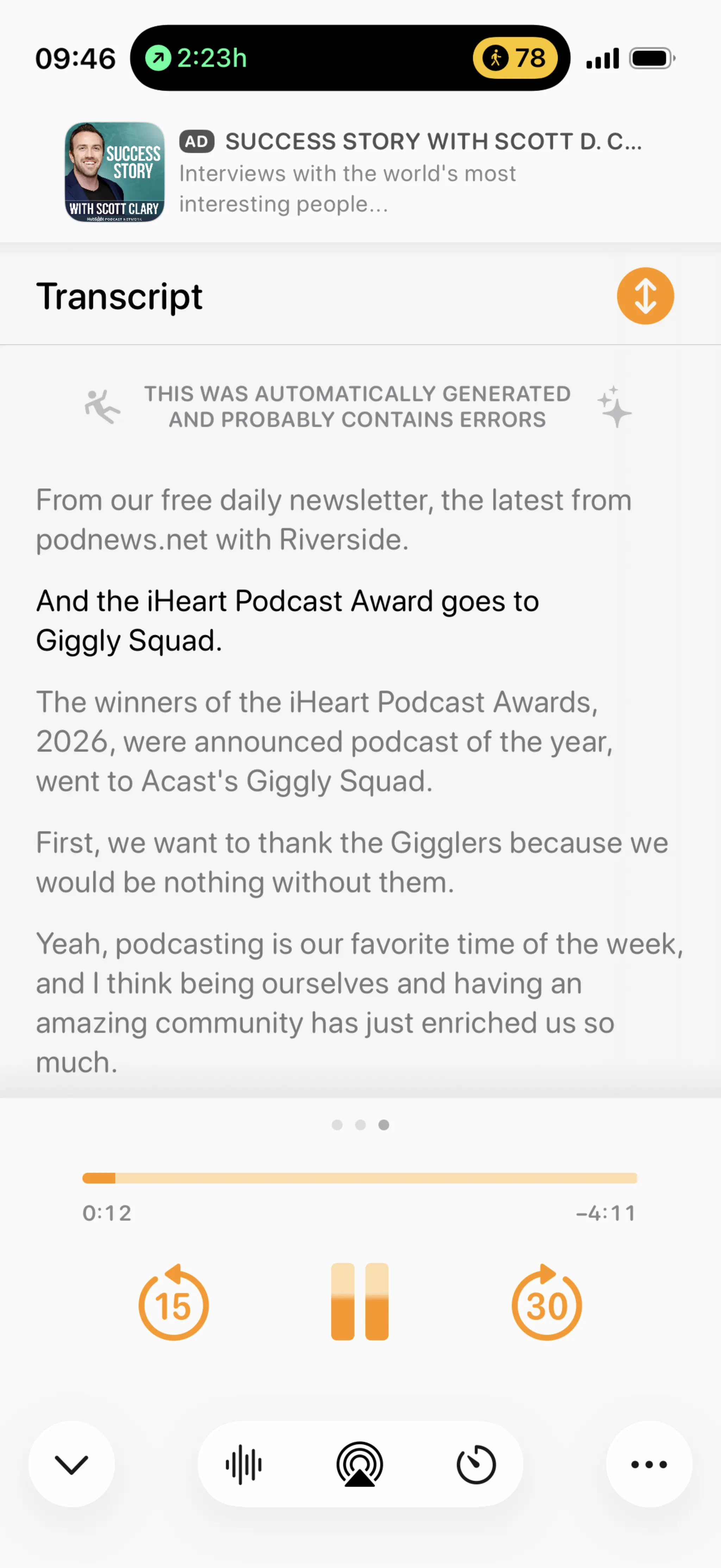 - Transcripts are coming to Overcast, and will be free for everyone, says developer Marco Arment. We first reported on this feature in July. The service doesn’t yet use creator-produced transcripts, relying on AI; and the current beta says (see it here) that each transcript “probably contains errors”. However, Marco tells Podnews that today’s build already downloads any VTT specified in the feed using the Podcasting 2.0 tag - "I just haven’t finished the parsing and display of them yet”, he says. (It’ll transcribe everything - even private feeds).